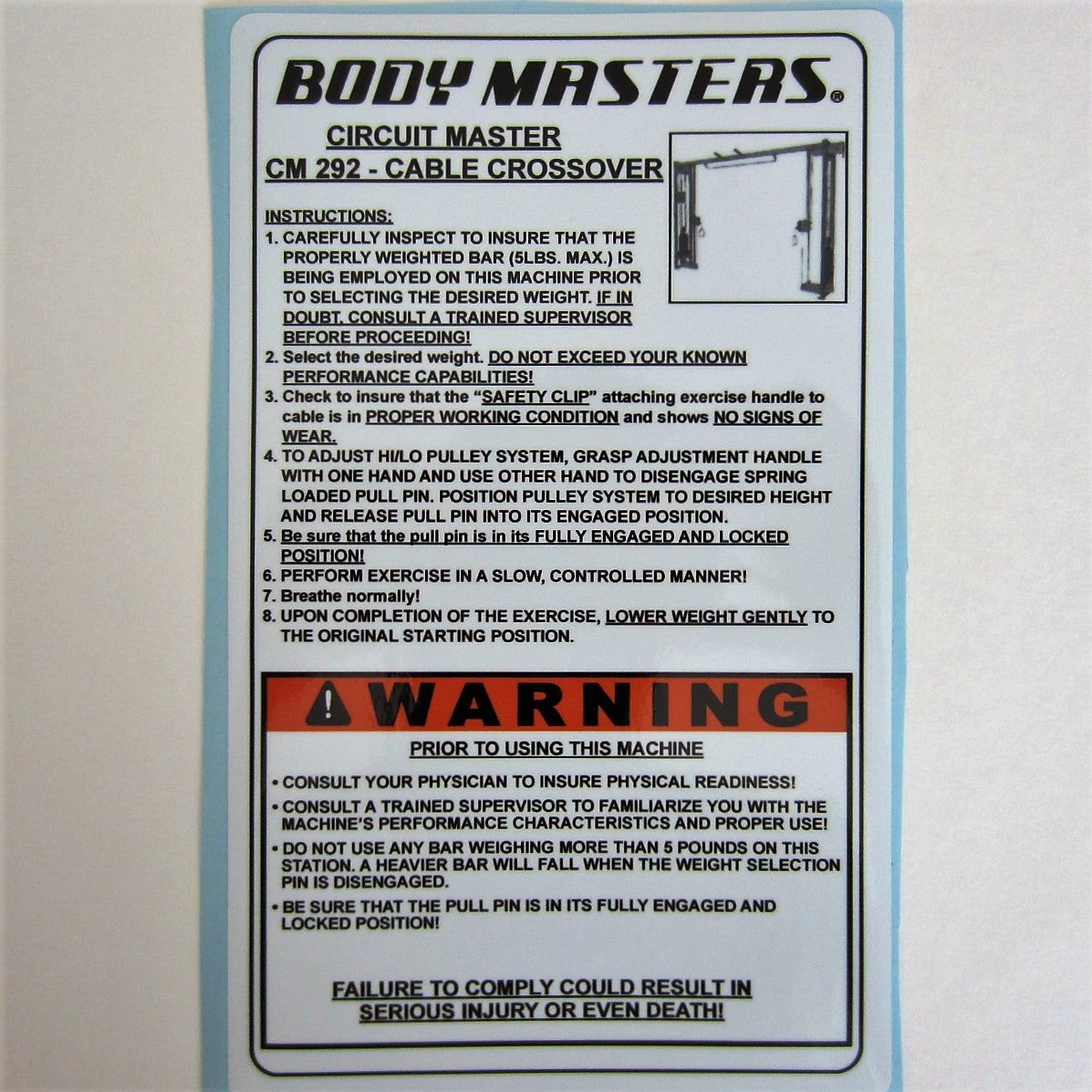Body Masters CM 292 Cable Crossover Instruction Decal