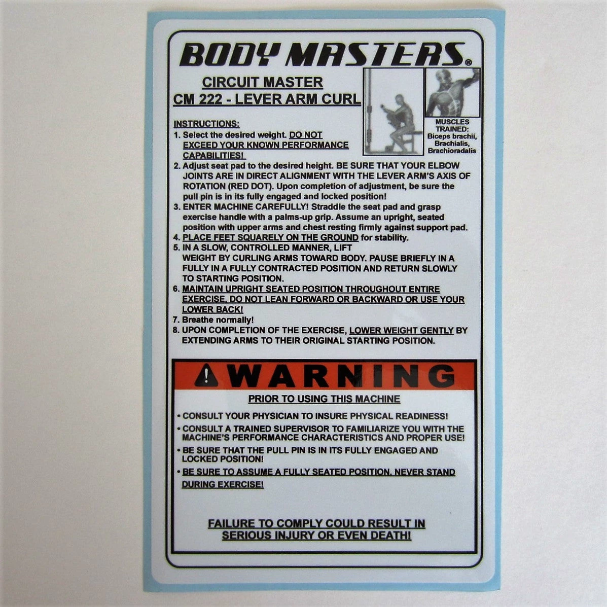 Body Masters CM 222 Lever Arm Curl Instruction Decal