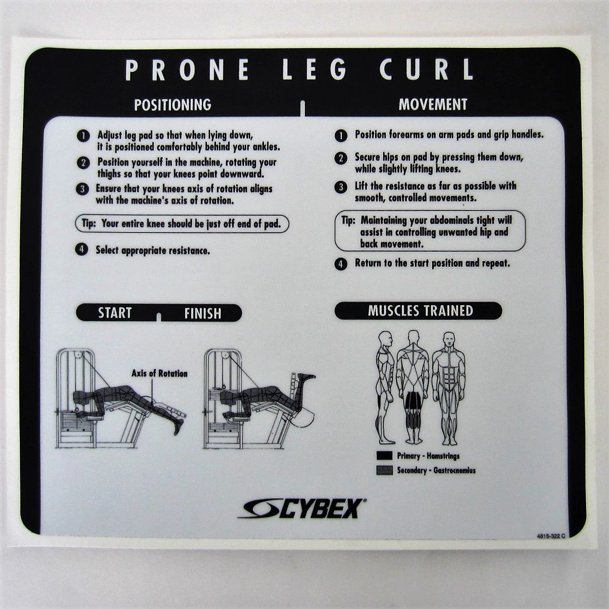 Cybex VR2 Prone Leg Curl Instruction Decal