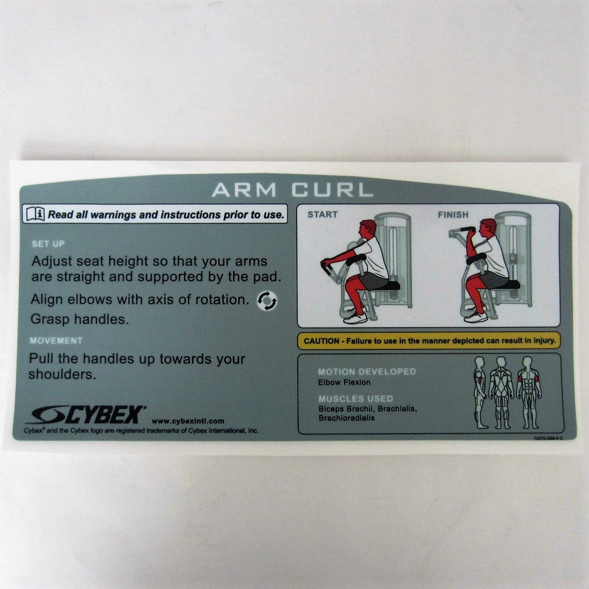 Cybex VR3 Arm Curl Instruction Decal