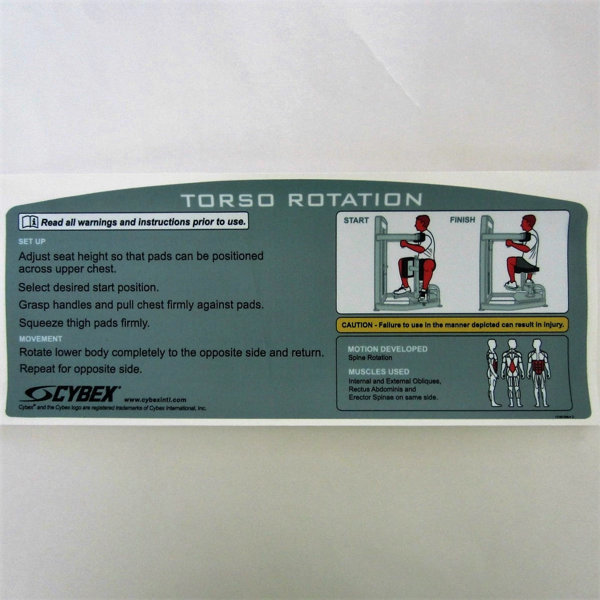 Cybex VR3 Torso Rotation Instruction Decal