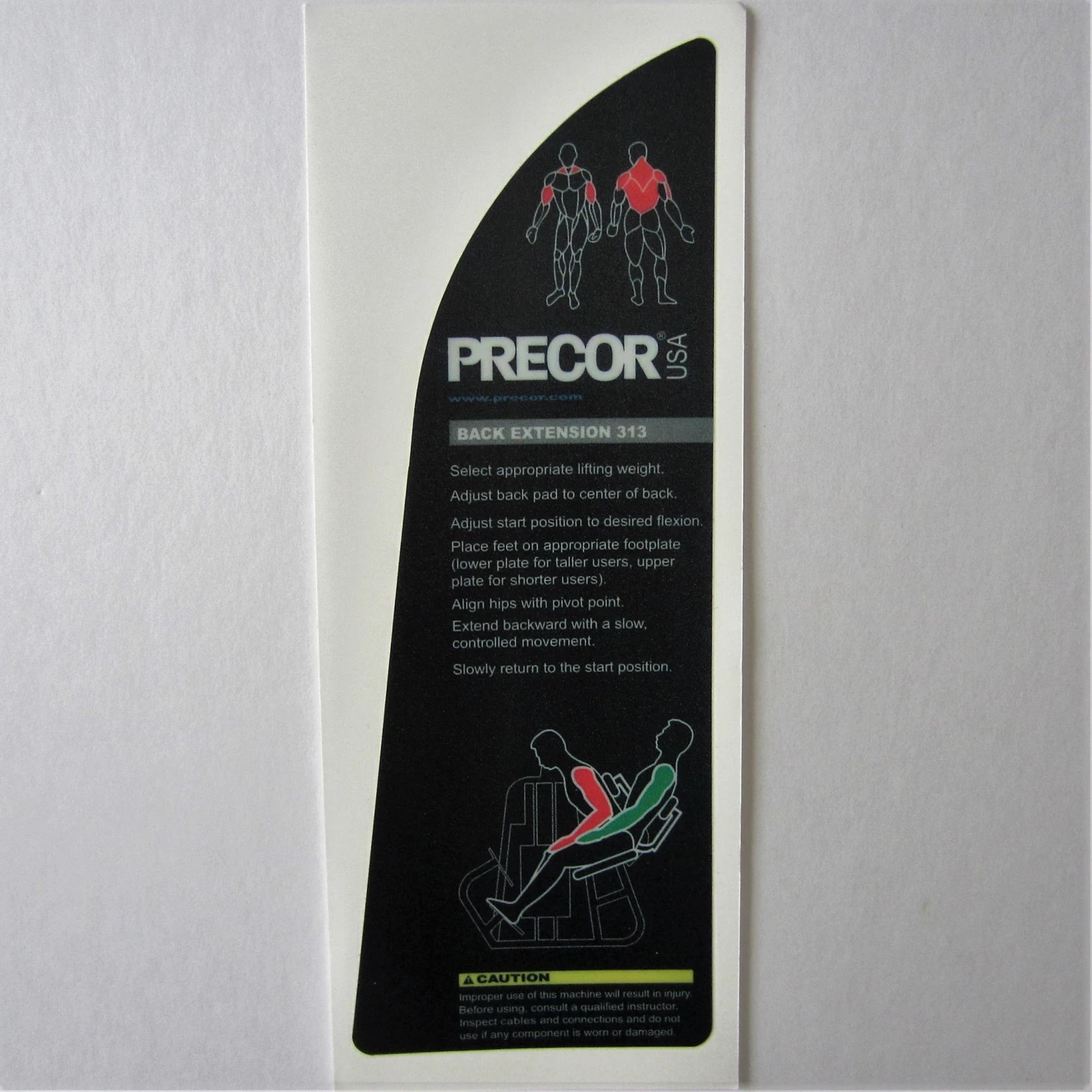 Precor 313 Back Extension Instruction Decal