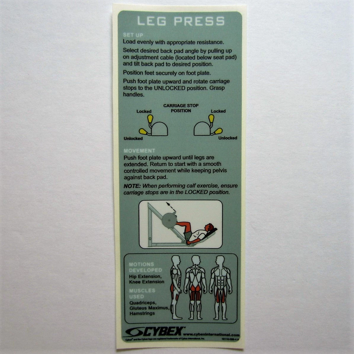 Cybex Leg Press Instruction Decal