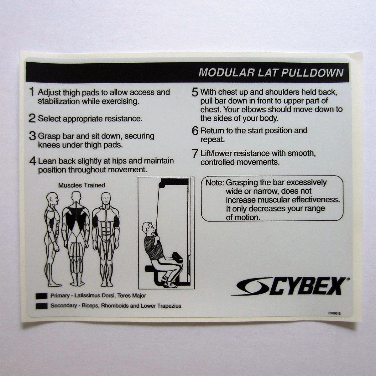Cybex Modular Lat Pulldown Instruction Decal