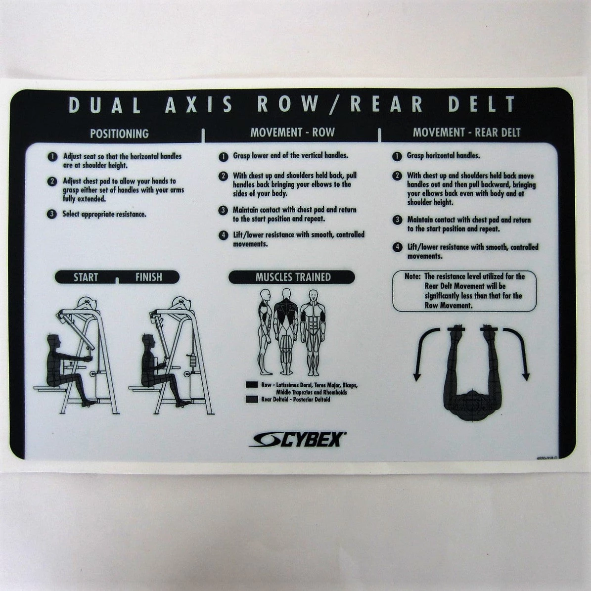 Original OEM Lexan Overlay Cybex VR2 Dual Axis Row/Rear Delt Instruction Overlay