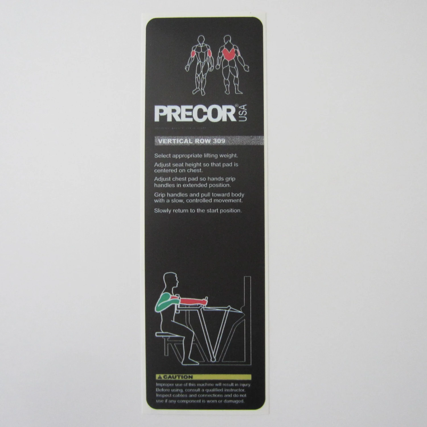 Precor 309 Vertical Row Instruction Decal.