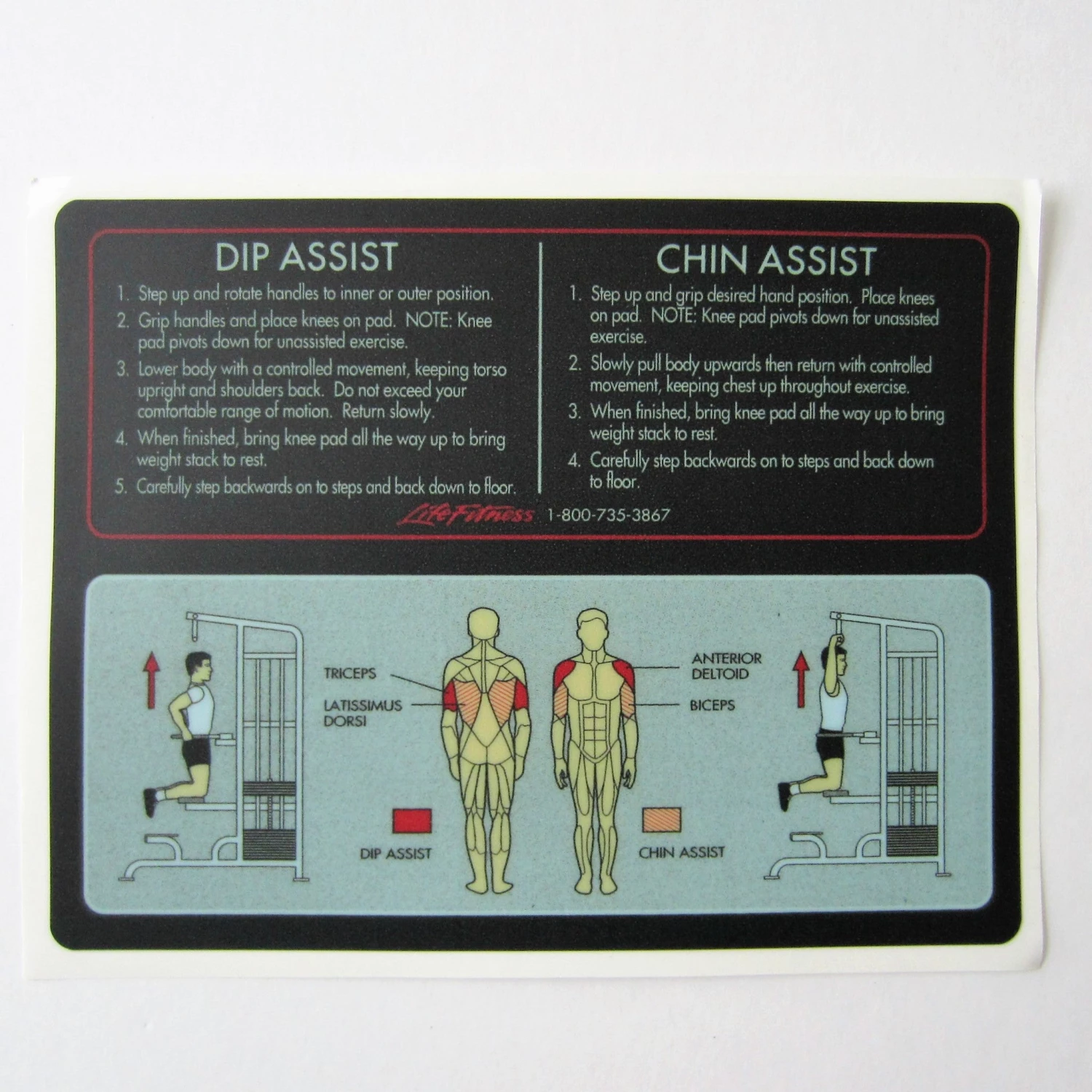Life Fitness Pro 1 Dip Assist / Chin Assist Instruction Decal