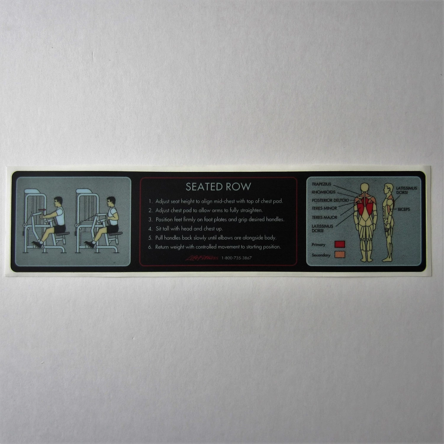 Life Fitness Pro 1 Seated Row Instruction Decal
